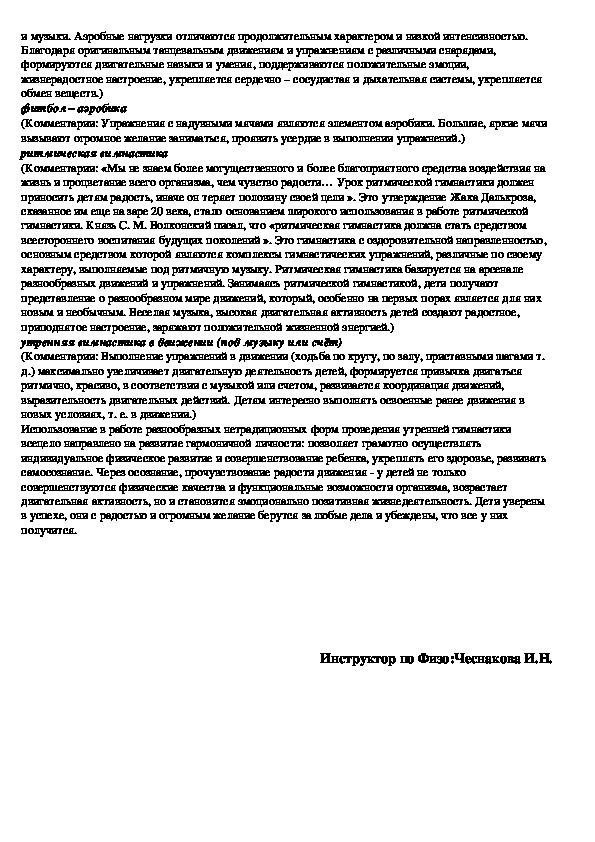 работы. Роль физической культуры в развитии дошкольника уникальна. Физическая культура