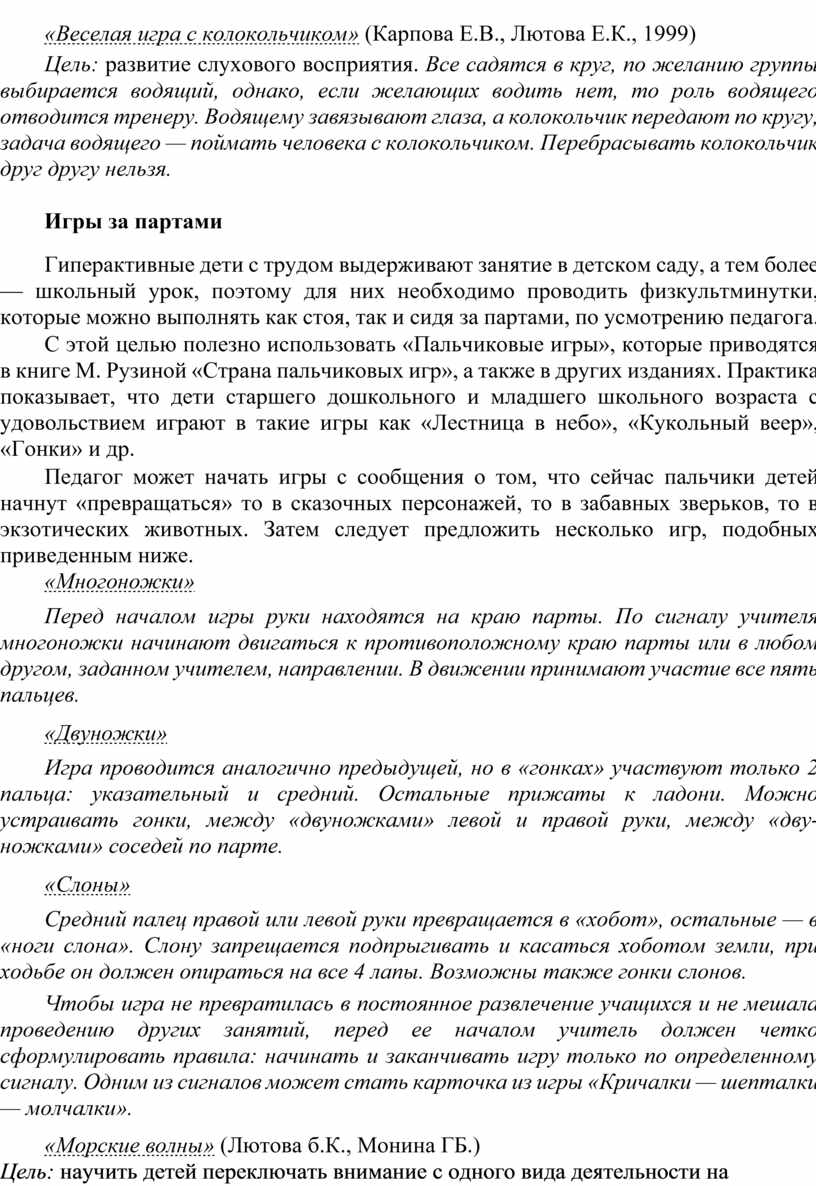 «Веселая игра с колокольчиком» (Карпова Е.В., Лютова Е.К., 1999)