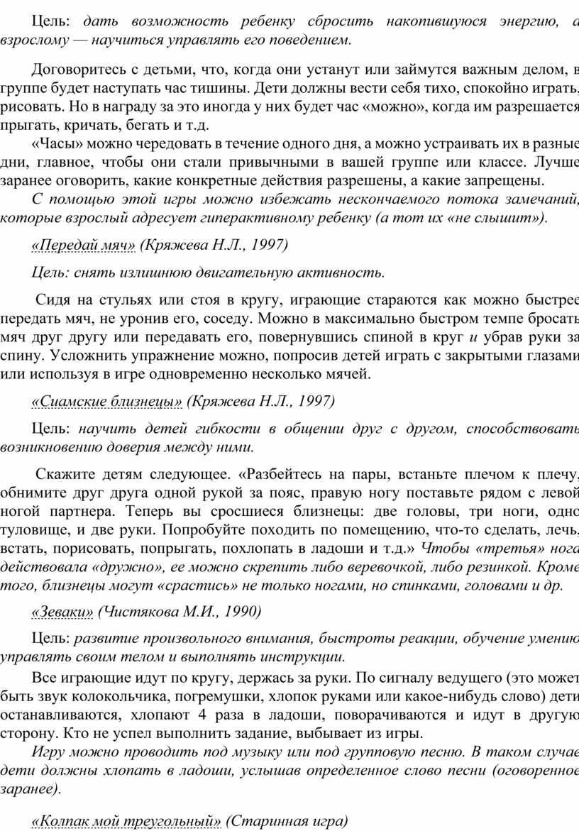 Цель: дать возможность ребенку сбросить накопившуюся энергию, а взрослому — научиться управлять его поведением.