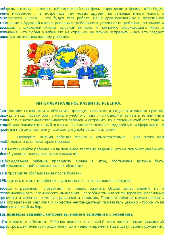ИНТЕЛЛЕКТУАЛЬНОЕ РАЗВИТИЕ РЕБЕНКА.