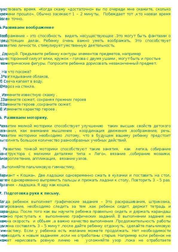 предстоящих делах. Ребенку очень важно уметь воображать. Это способствует