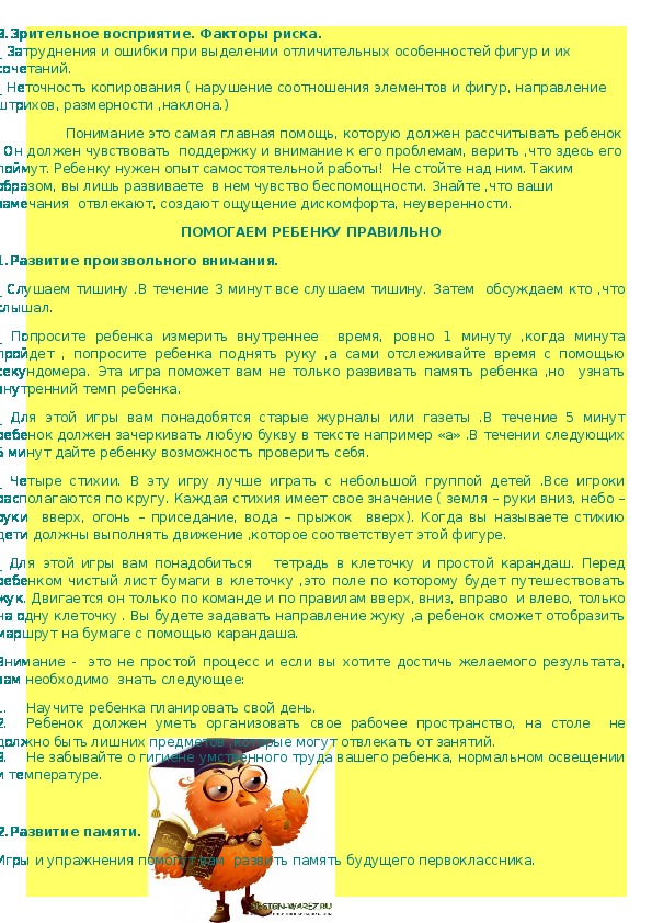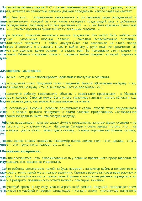 Игры и упражнения помогут вам развить память будущего первоклассника._ Прочитайте ребенку ряд из 8 -7 слов не связанных по смыслу друг с другом, второй