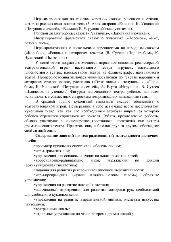 Содержание занятий по театрализованной деятельности включает