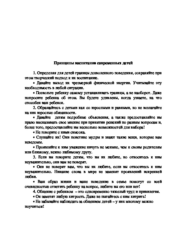 или в подъеме на новый уровень развития.Принципы воспитания современных детей