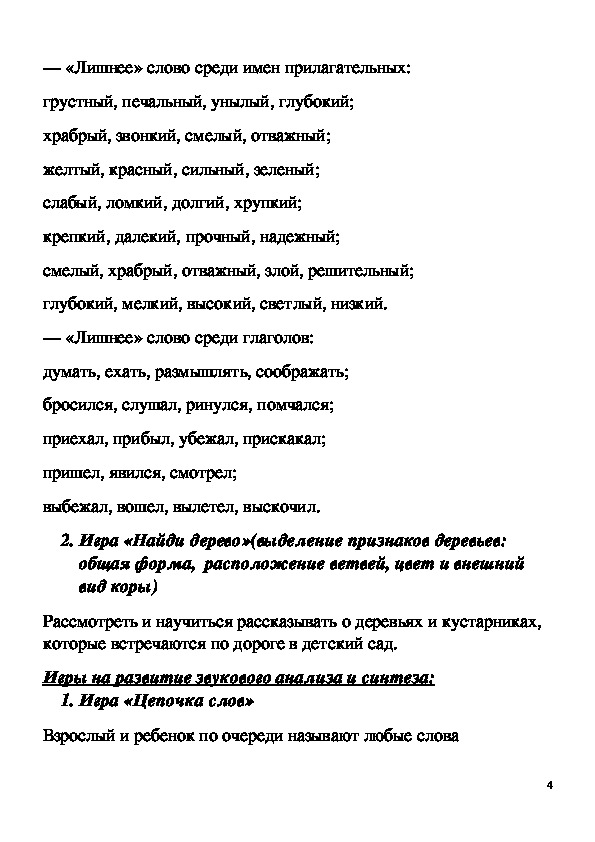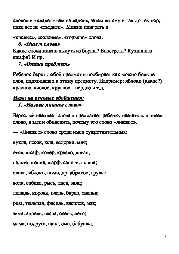Взрослый называет слова и предлагает ребенку назвать «лишнее»