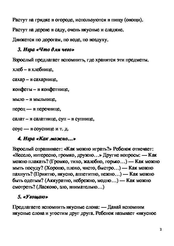 вкусные слова и угостим друг друга. Ребенок называет «вкусное