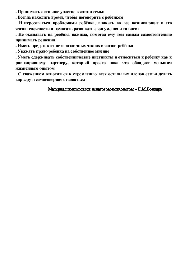 Материал подготовлен педагогомпсихологом – Е.М.Бондарь