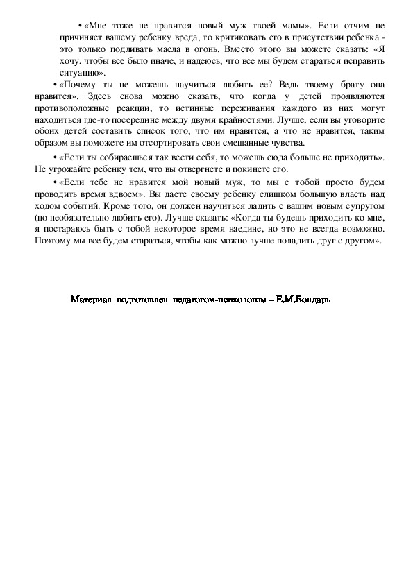 хороших отзывов, он может ошибочно решить, что ребенку отчим не нравится.