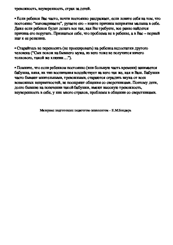 стать навязчивым. Тревожность обычно сочетается с гиперопекой,