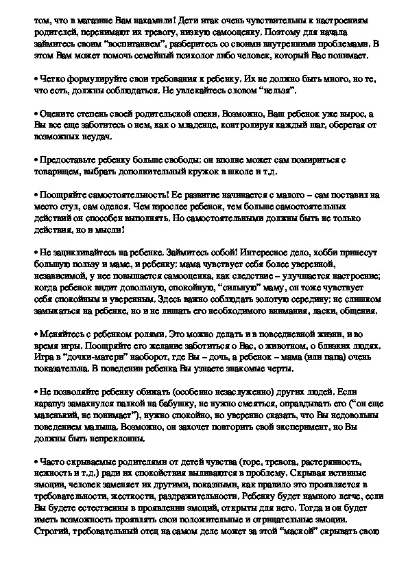 • Оцените степень своей родительской опеки. Возможно, Ваш ребенок уже вырос, а