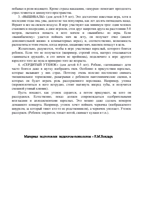 Материал подготовлен педагогомпсихологом – Е.М.Бондарь