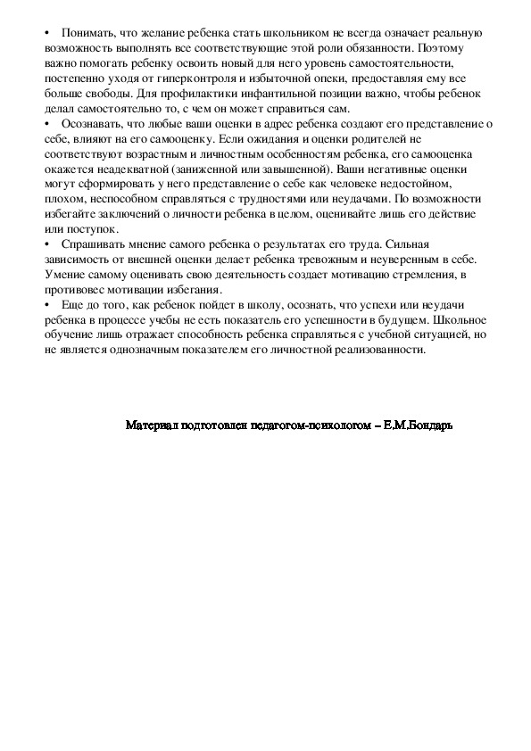 • Еще до того, как ребенок пойдет в школу, осознать, что успехи или неудачи
