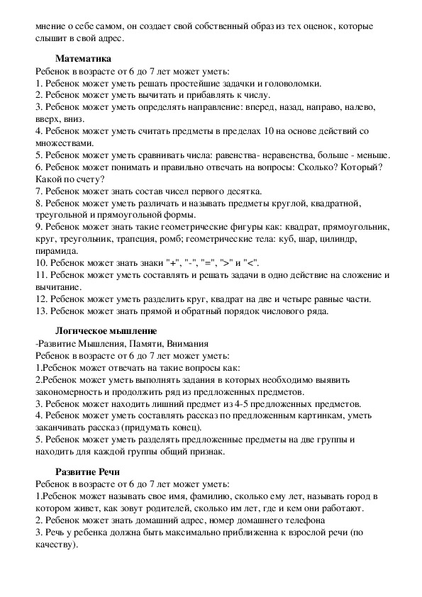 Ребенок в возрасте от 6 до 7 лет может уметь: