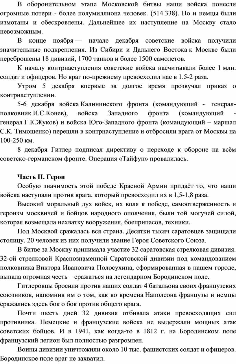 В битве за Москву принимала участие 32 саратовская стрелковая дивизия.
