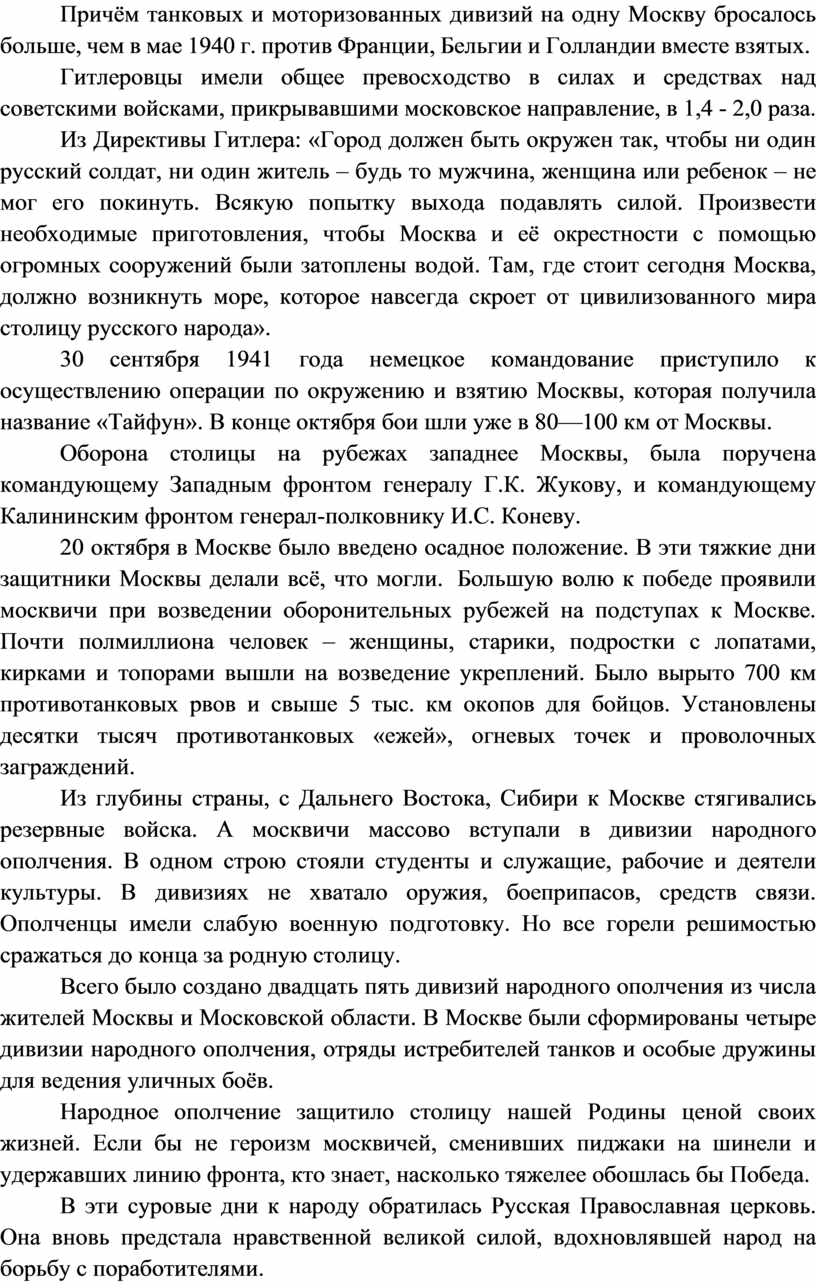 Высокий моральный дух войск, их воля к победе, самоотверженность и героизм москвичей и бойцов народного ополчения, были той могучей силой, которая возмещала нехватку вооружения, боеприпасов, техники.