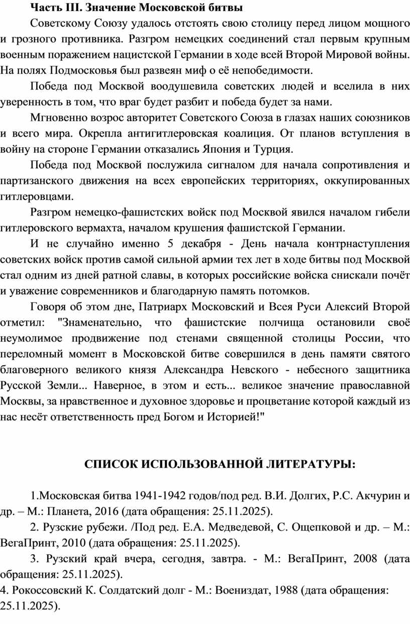 1.Московская битва 1941-1942 годов/под ред. В.И. Долгих, Р.С. Акчурин и др. – М.: Планета, 2016 (дата обращения: 25.11.2025).