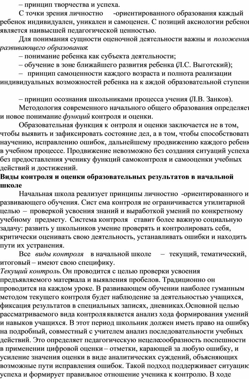 Методологической основой современной системы контроля и оценки учебных достижений младших школьников являются положения личностно- ориентированного и развивающего образования. Ведущими принципами личностно-ориентированного образования выступают: