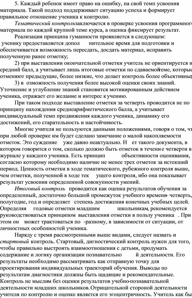 Учебные успехи младших школьников в соответствии с принципами гуманности и развития необходимо оценивать позитивно, по принципу суммирования достижений, а не вычитания (вычитая баллы за допущенные ошибки, не предоставляя таким образом ему права на ошибку).