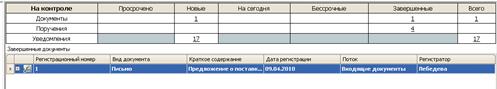 После полного исполнения документ снимается с контроля и помещает- ся в раздел Завершенные (рис. 16.9), где он хранится до передачи в архив или удаления за ненадобностью.