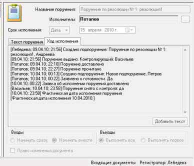 Рис. 16.7. Ход исполнения документа