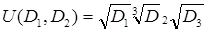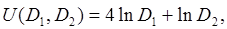 ринок із трьох учасників. Відома функція корисності товарів D1, D2, D3 кожного учасника: