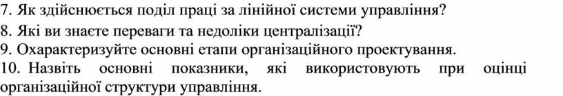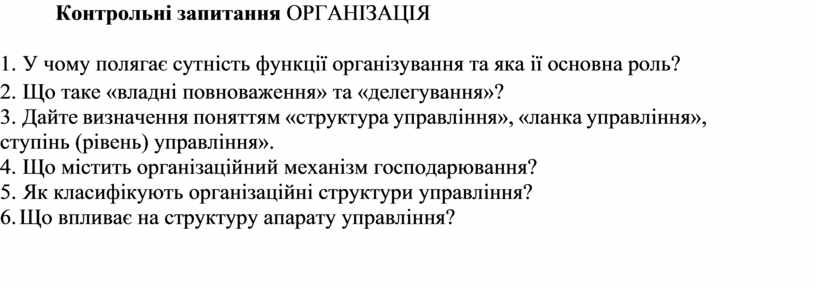 Контрольні запитання ОРГАНІЗАЦІЯ