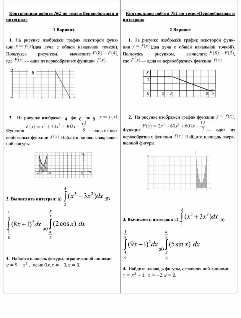 Контрольная работа №2 по теме:»Первообразная и интеграл» 2 Вариант 1. На рисунке изображён