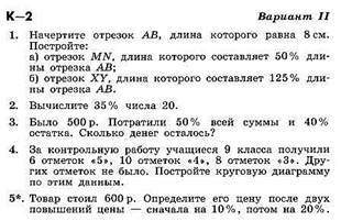Контрольная работа №2по теме «Пропорции, проценты». |