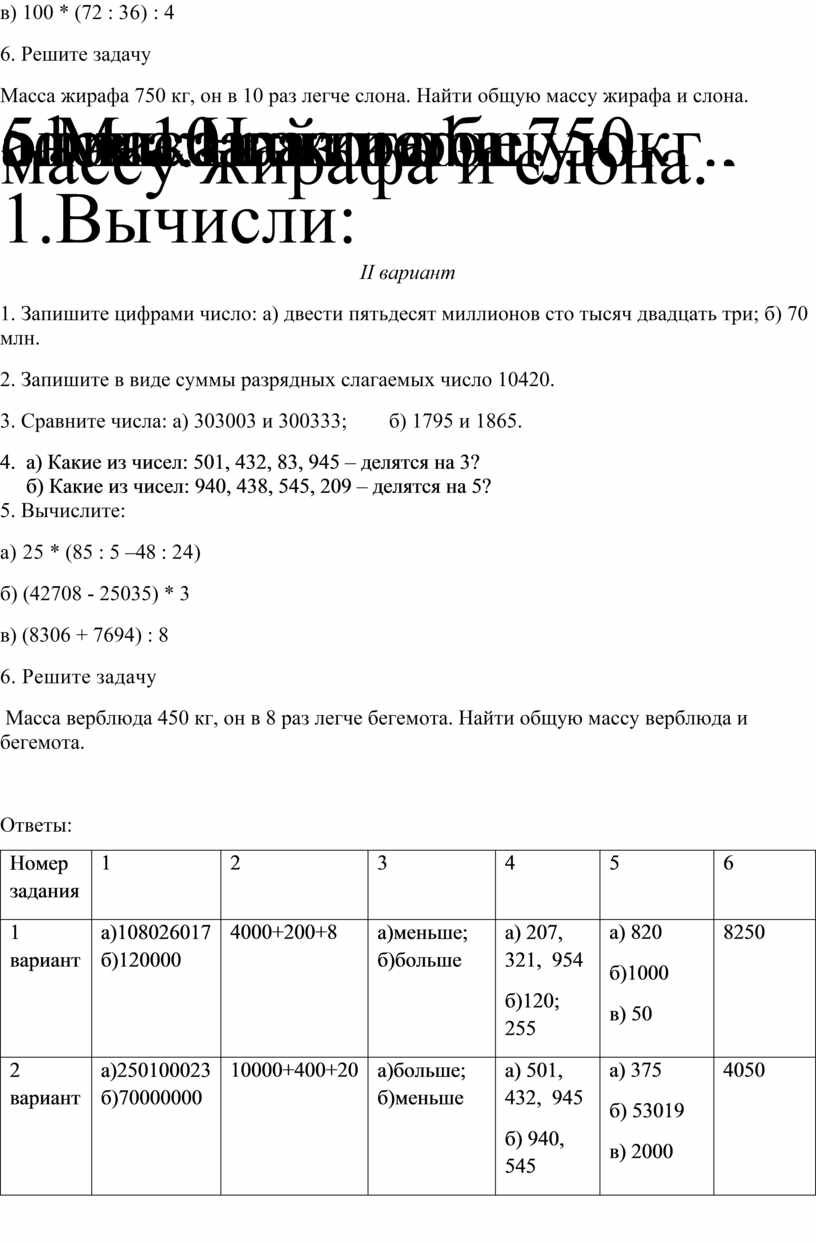 5.Масса жирафа 750кг., он в 10 раз легче африканского слона.Найти общую