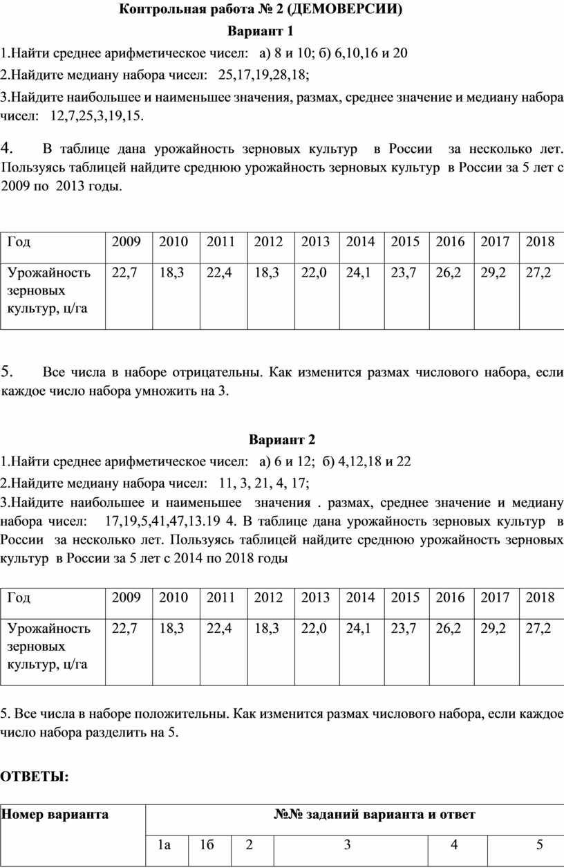 Контрольная работа № 2 (ДЕМОВЕРСИИ)