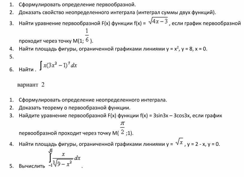 свойство неопределенного интеграла (интеграл суммы двух функций).