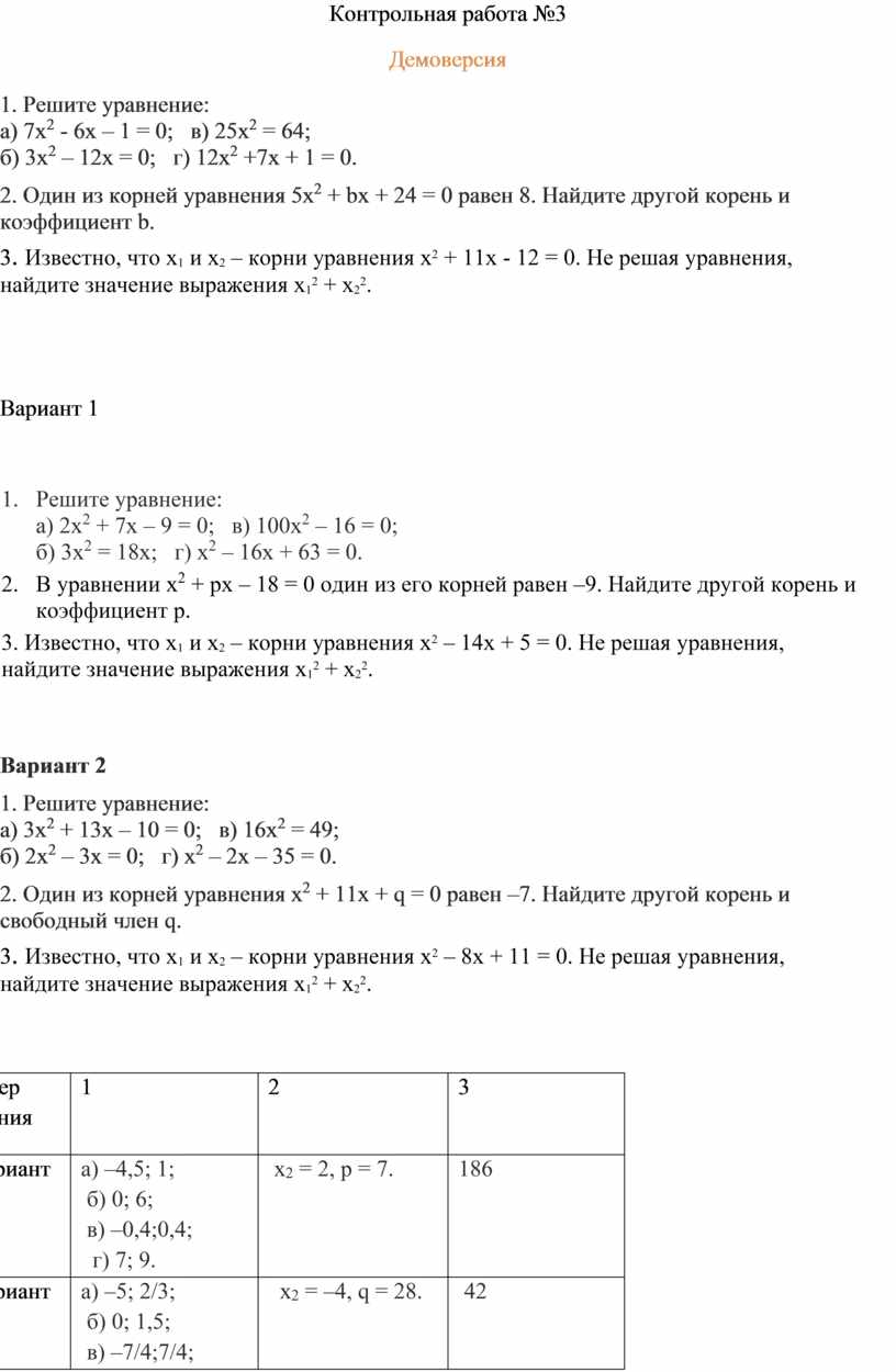 2. Один из корней уравнения x2 + 11x + q = 0 равен –7. Найдите другой корень и свободный член q.