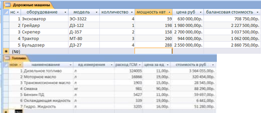 Создайте базу данных «Оборудование», состоящую из двух таблиц: Дорожные машины и Топливо. Для каждой таблицы создайте ФОРМУ.