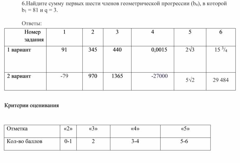 6.Найдите сумму первых шести членов геометрической прогрессии (bn), в которой b1 = 81 и q = 3.