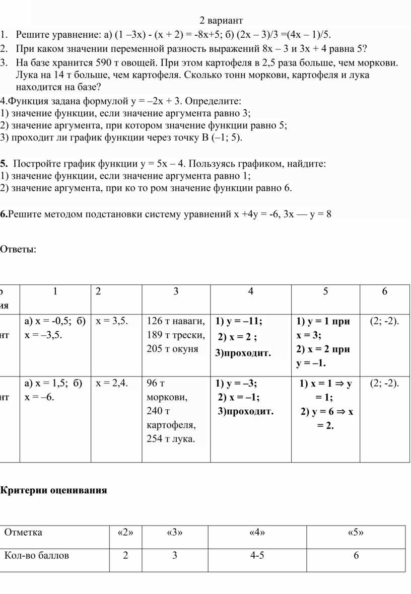 2. При каком значении переменной разность выражений 8х – 3 и 3х + 4 равна 5?