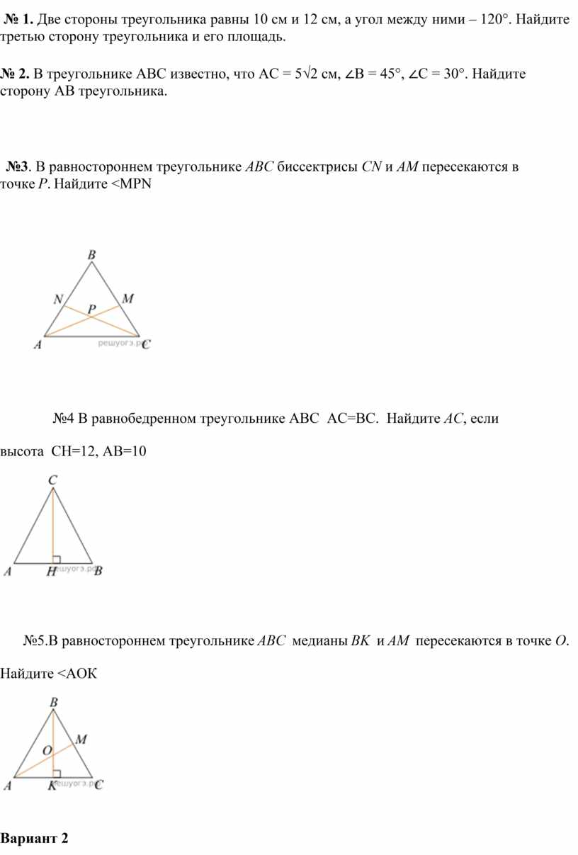 № 1. Две стороны треугольника равны 10 см и