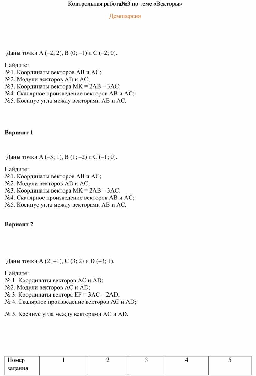 № 3. Координаты вектора EF = 3AC – 2AD;