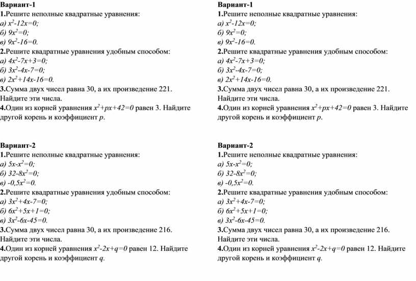 1.Решите неполные квадратные уравнения: