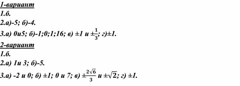 0и5; б)-1;0;1;16; в) ±1 и ±