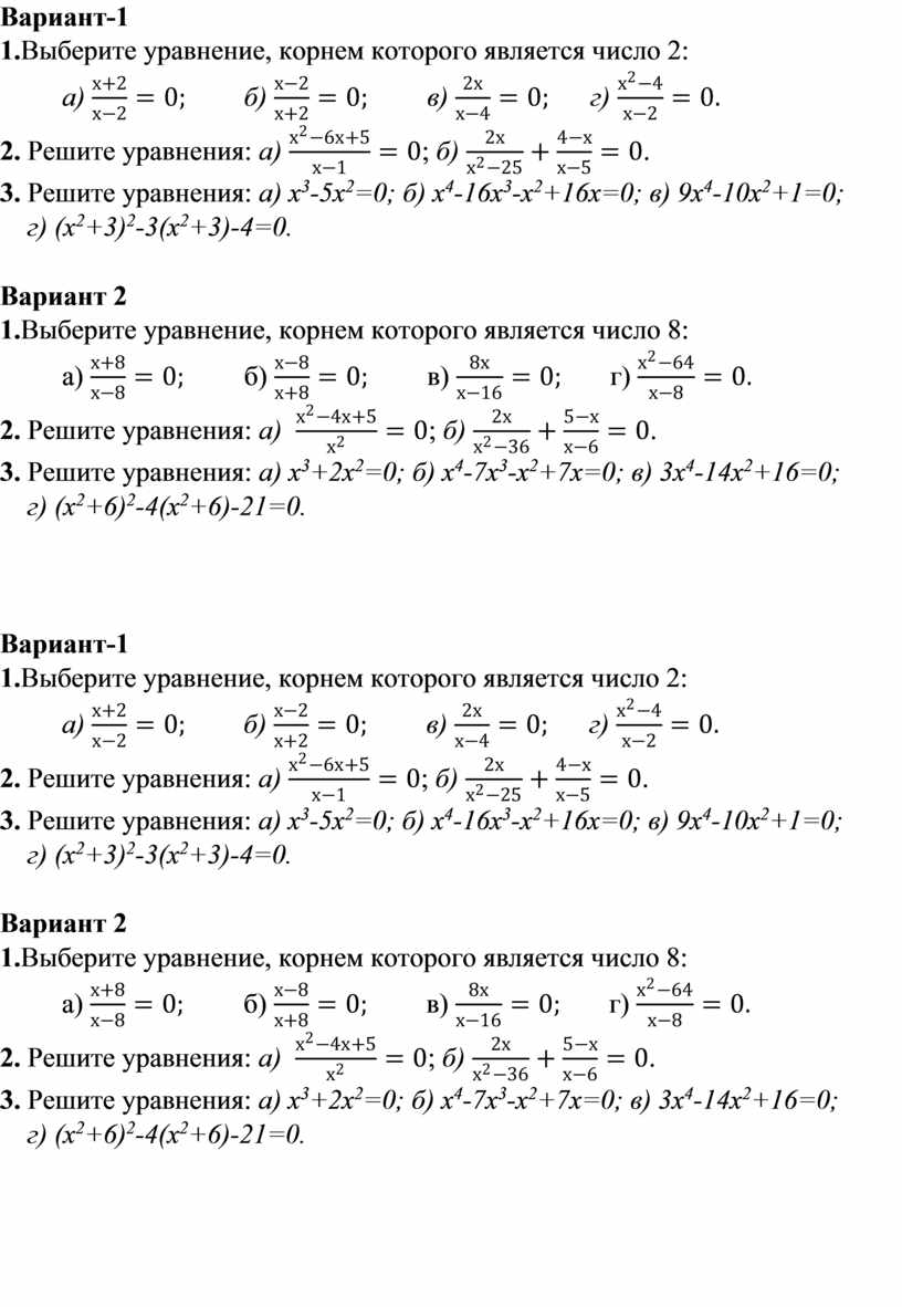 1.Выберите уравнение, корнем которого является число 2:
