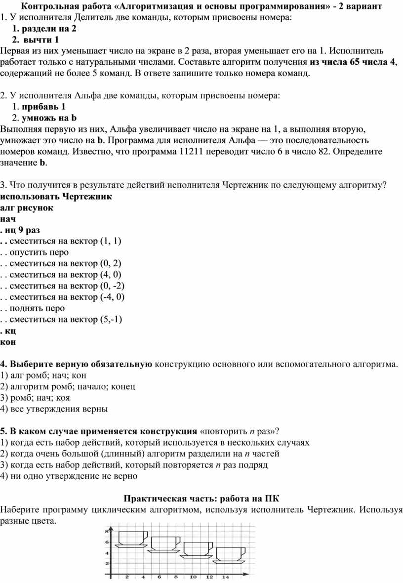 Контрольная работа «Алгоритмизация и основы программирования» - 2 вариант