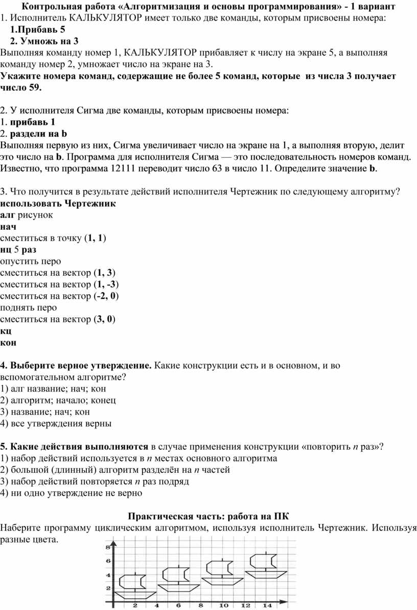 Контрольная работа «Алгоритмизация и основы программирования» - 1 вариант