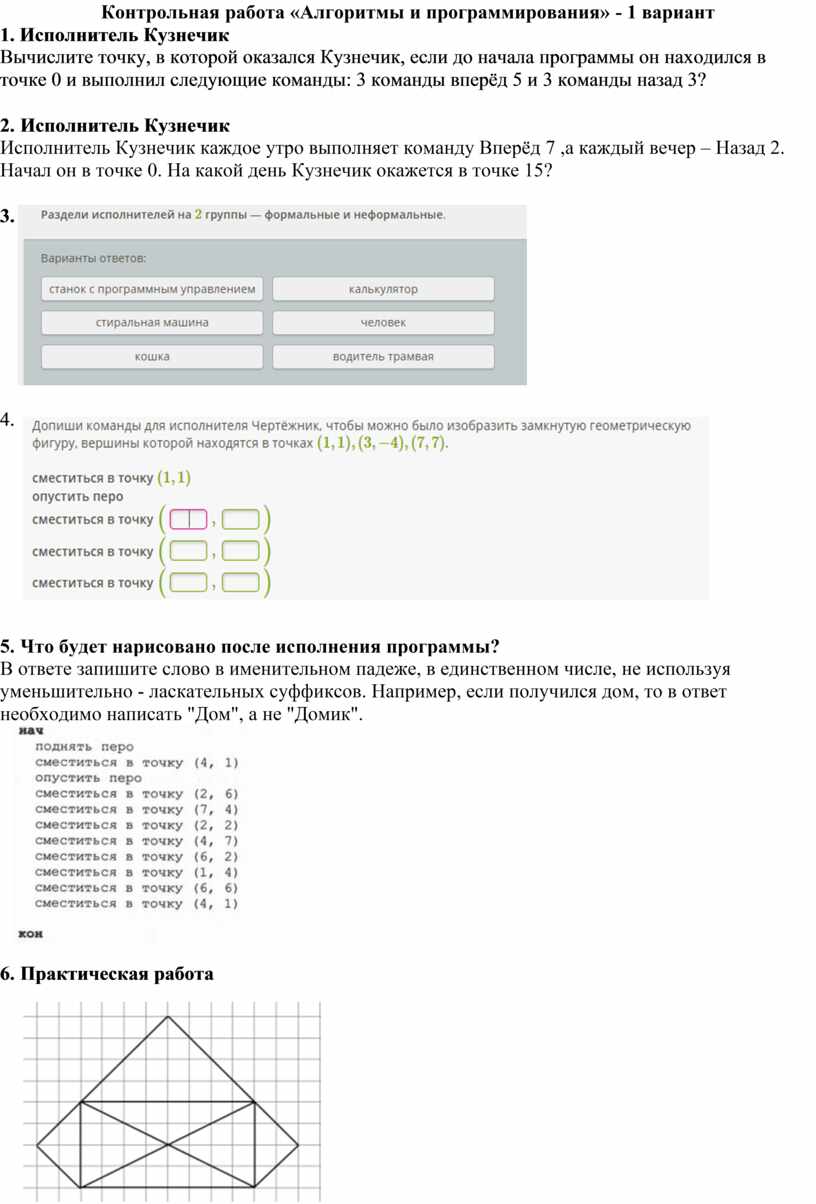 Контрольная работа «Алгоритмы и программирования» - 1 вариант