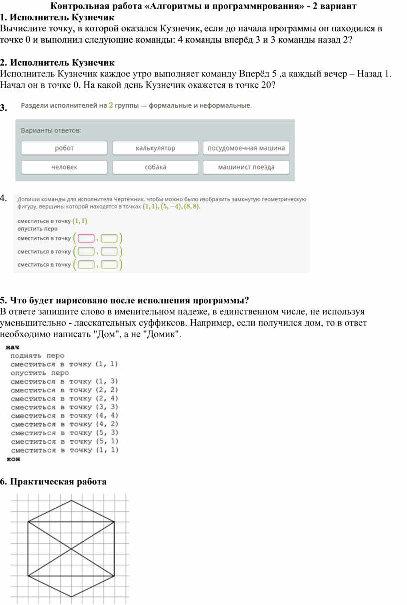 Контрольная работа «Алгоритмы и программирования» - 2 вариант