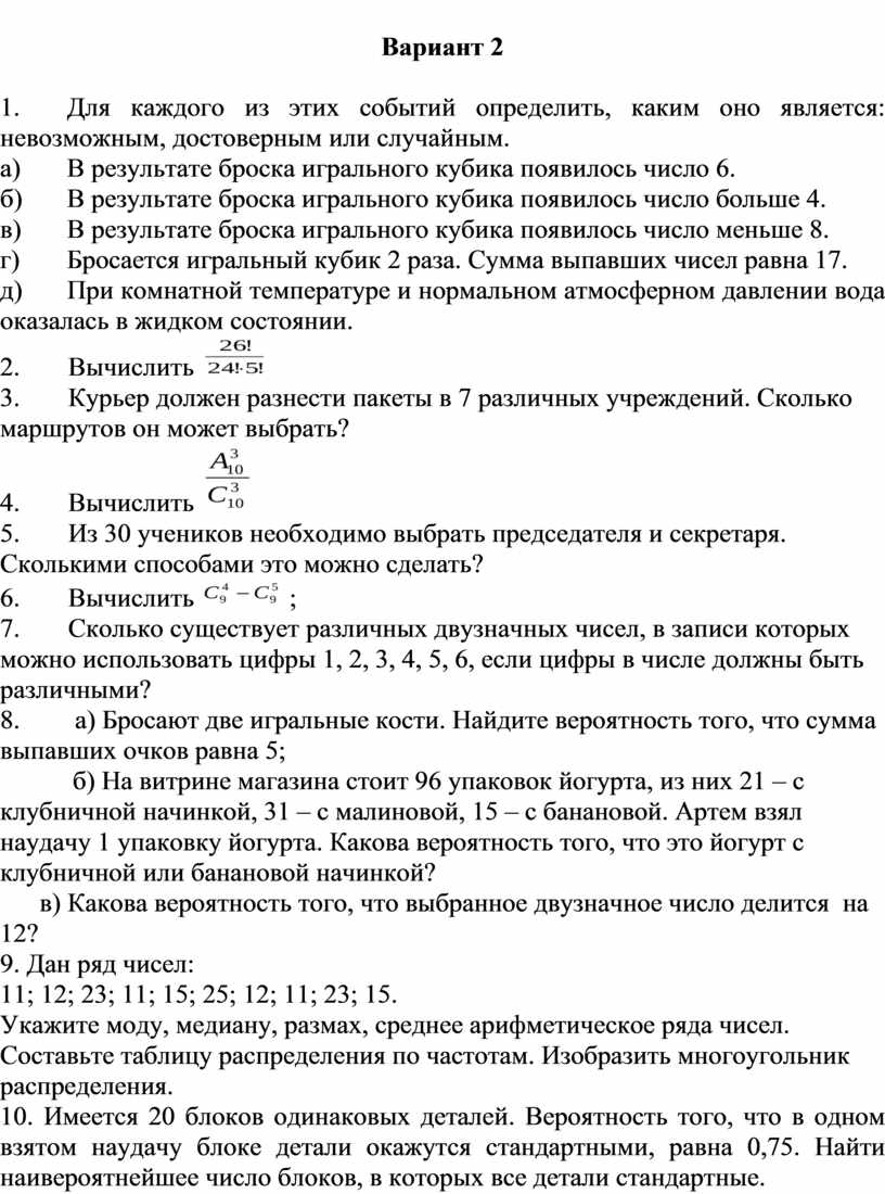1. Для каждого из этих событий определить, каким оно является: невозможным, достоверным или случайным.