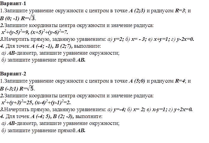 1.Запишите уравнение окружности с центром в точке А (2;3) и радиусом R=3; и
