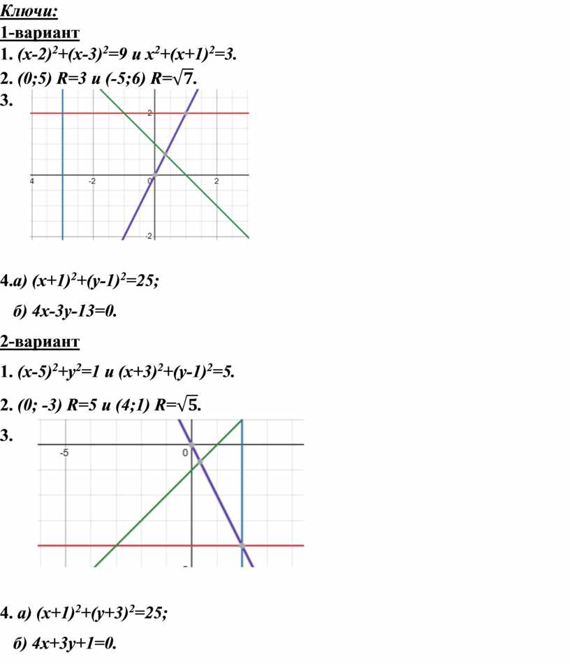1. (х-5)2+у2=1 и (х+3)2+(у-1)2=5.