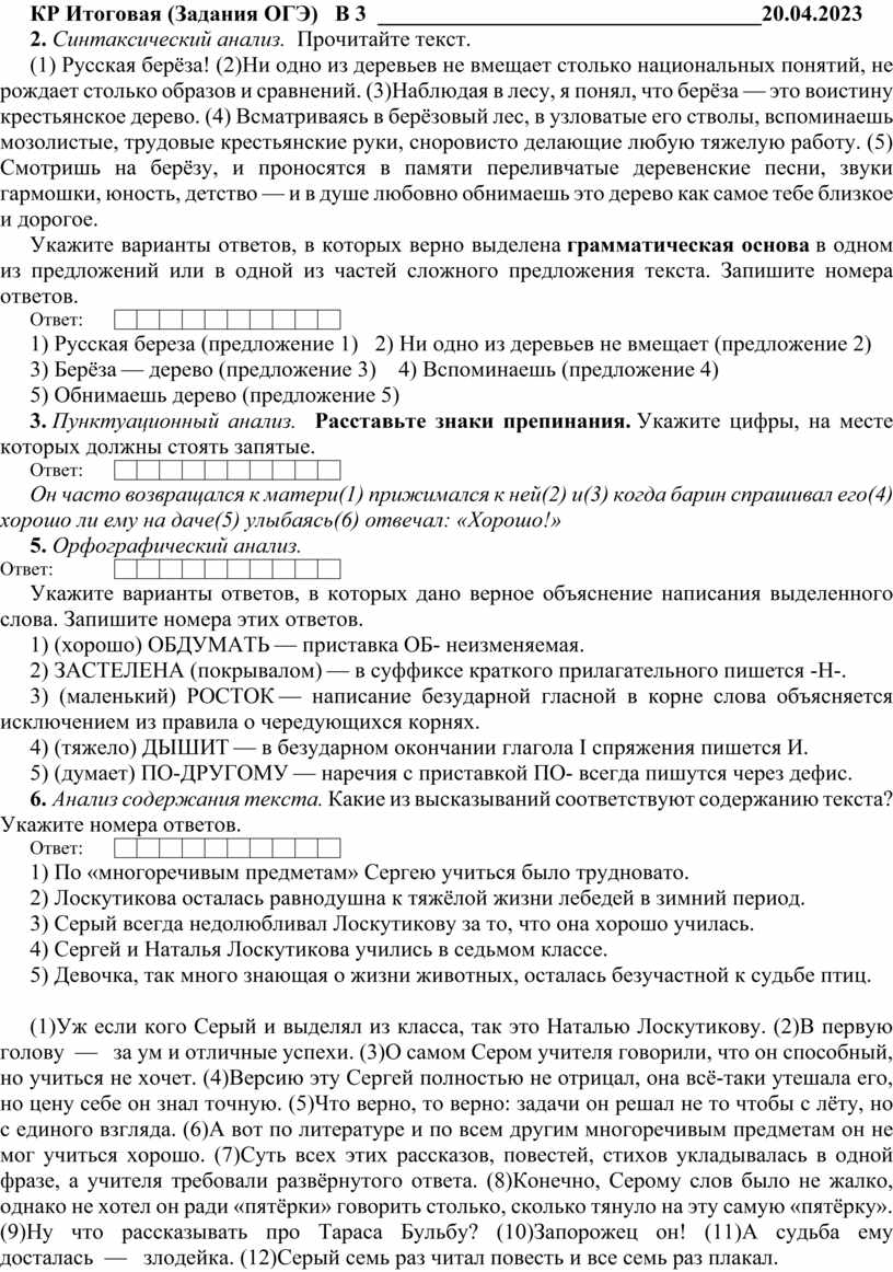 КР Итоговая (Задания ОГЭ) В 1 __________________________________20.04.2023