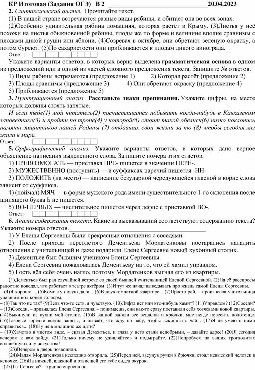 КР Итоговая (Задания ОГЭ) В 2 _______________________________20.04.2023