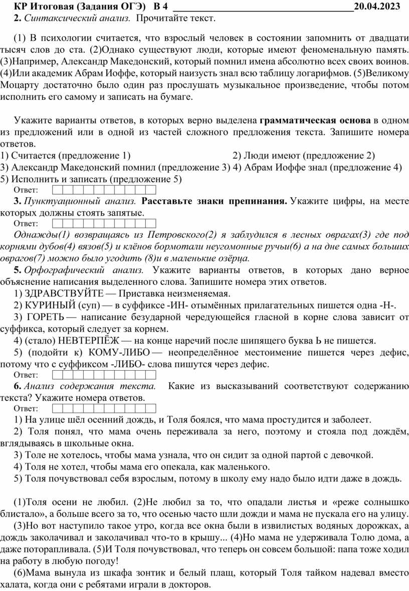 КР Итоговая (Задания ОГЭ) В 4 ___________________________________20.04.2023